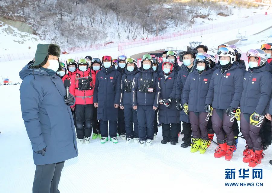 在国家冬季两项中心看台,习近平观看了冬季两项越野滑雪和射击运动员接力训练情况,并看望慰问国家冬季两项、跳台滑雪队运动员、教练员和张家口赛区运行保障团队、建设者代表。习近平亲切地对大家说,我这次来考察北京冬奥会、冬残奥会筹办情况,也是在牛年春节前来看望大家。大家都在为办好一届成功的冬奥盛会而努力,运动员在刻苦训练,建设单位和建设者、保障团队兢兢业业,成功打造了一批世界一流的精品工程,大家的奋斗精神、奉献精神令人感奋。习近平强调,北京冬奥会、冬残奥会所有场馆建设提前一年完成,我国很多冰雪项目在两年多时间里实现从无到有,有的项目达到了世界先进水平,充分体现了党的领导和举国体制、集中力量办大事的制度优势。